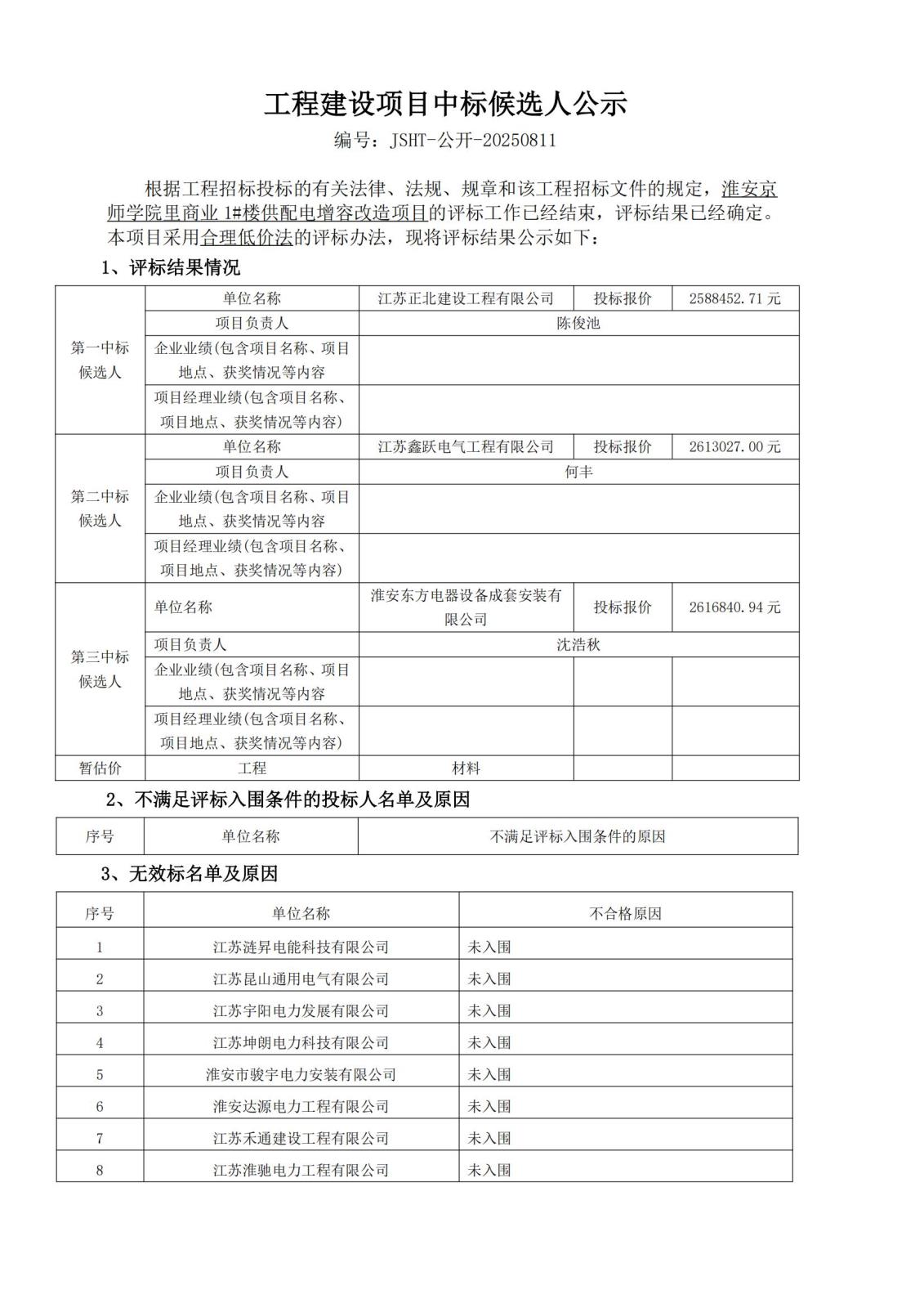 工程建設項目中標候選人公示